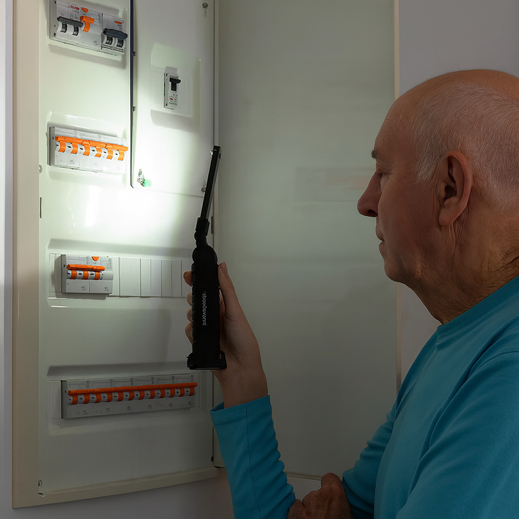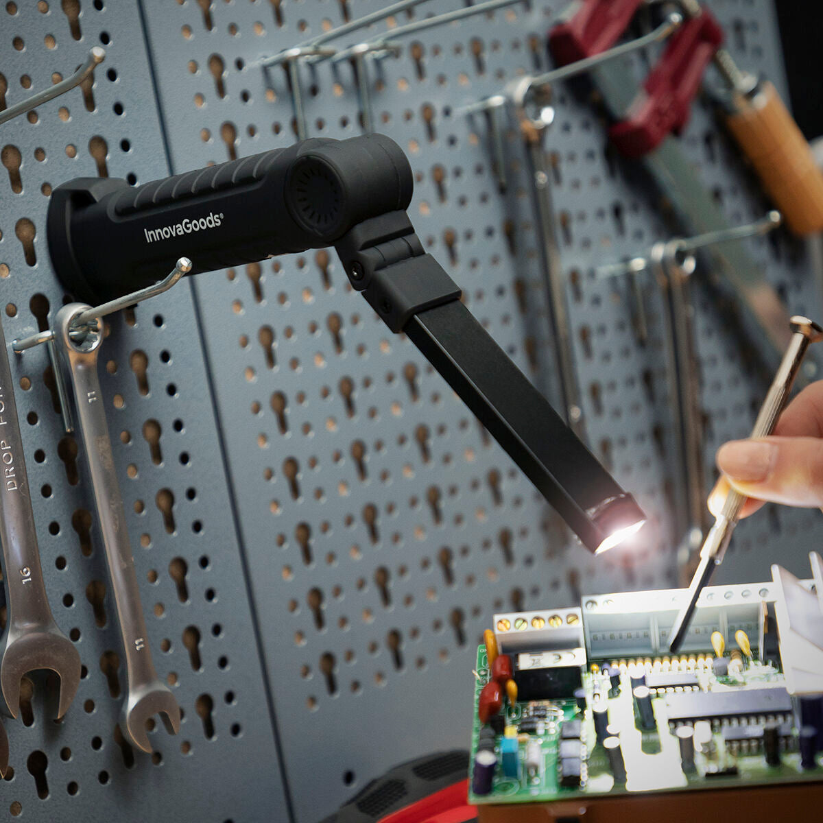 Känner du också en karl som alltid står och kisar i mörkret i garaget, under bilen eller vid grillen, med en ficklampa som är lika praktisk som ett stearinljus i storm? Det börjar med “det här räcker bra” och slutar med att han balanserar lampan på en färgburk medan han svär över att den rullar ner på golvet.